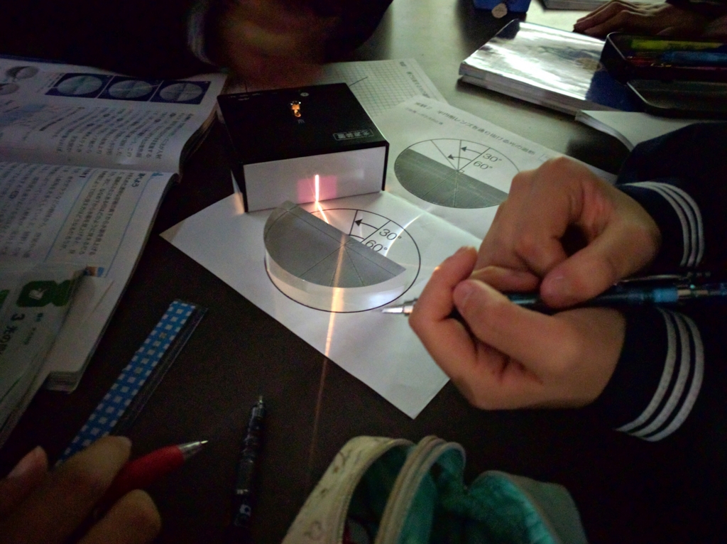 1年生は小単元「光の世界」丸ごとの『学び合い』に突入。様々な実験に加えて光の反射・屈折・凸レンズの作図もマスターしなければならないので、過去最長の9時間を確保した。